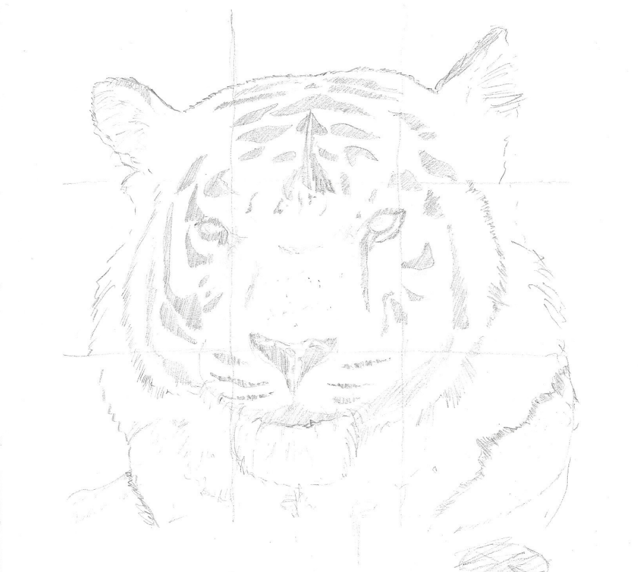 J’ai tout d’abord redessiné le tigre en réalisant le même cadrillage, de sorte à m’imprégner les dimensions du tigre et à pouvoir, par la suite, réaliser le logo le plus adapté à ma marque.